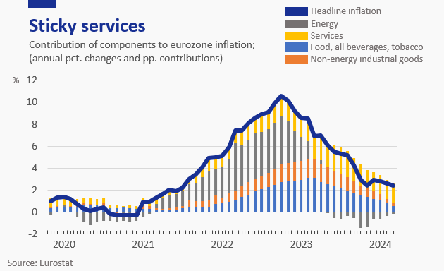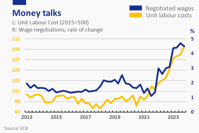 The eurozone economy is marked by lacklustre growth and productivity figures. Tight financing conditions have kept demand in check, with inflation slowly nearing the ECB’s 2% inflation target; interest rate cuts can be expected in the upcoming months. Despite falling inflation, the labour market is hot as ever.