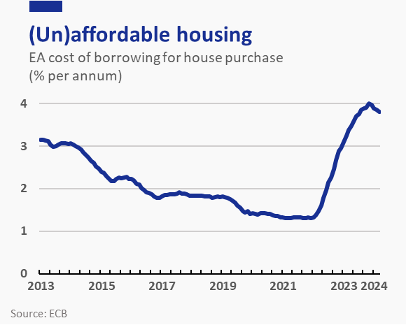 Tight financing conditions have kept money supply and demand for loans subdued in the euro area. Despite record-high bank profitability caused by elevated interest rates and rising net interest margins in 2023, a fall in bank profit margins can be expected in 2024 due to falling lending rates, elevated costs of acquiring equity and depreciating asset quality.