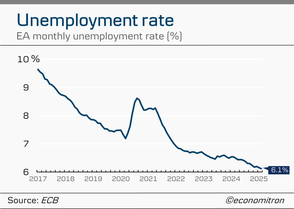 For the second year running, here are the 20 (+1) best charts to describe the current situation in the eurozone economy. As always, the charts are original works (albeit inspired by a certain “Danske Bank” visual style) using data from either Eurostat or the ECB.