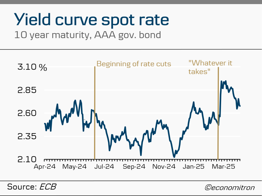It is also interesting to note that yields on government bonds are also going up, being driven up significantly by recent infrastructure and defence spending plans by Germany’s new chancellor. This topic deserves its own blog post.
