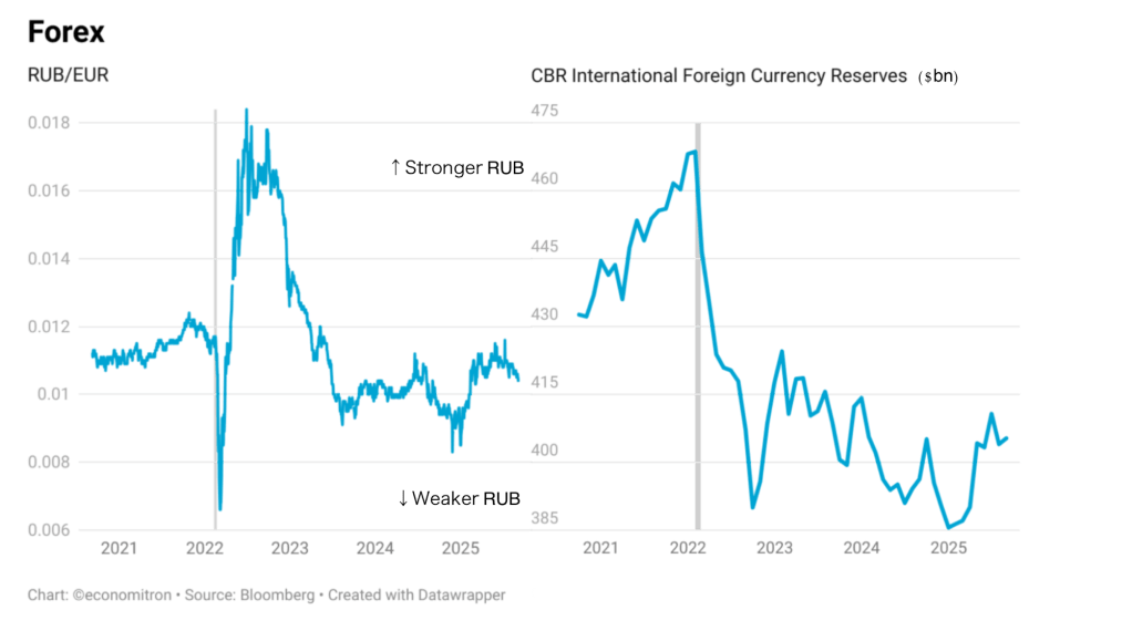 The ruble is a noteworthy point of contention when examining the country’s exports. In addition to BRICS demand, tight capital controls and a cessation of imports into the country have caused the currency to remain strong. This has hurt export revenues. A weak ruble would, however, pose an even greater threat to financial stability. Indeed, on the morning of Russia’s full-scale invasion on Ukraine, the Central Bank of Russia extraordinarily stepped into the domestic FX market to reverse course on the tumbling ruble. As luck would have it, its foreign currency reserves were at a decades high.